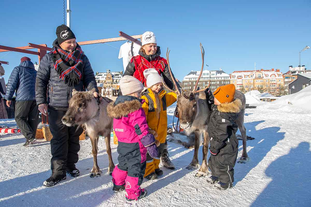 Vår kära renar från Kaatis Reindeers Länk till annan webbplats, öppnas i nytt fönster., Násti (stjärna på nordsamiska) och Mánnu (måne) hälsar på.